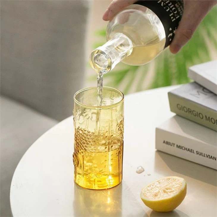 A parede externa é decorada com um relevo requintado, que não é apenas decorativo, mas também tem efeito antiderrapante e cria uma aderência confortável. Feito de vidro com alto teor de borosilicato, é transparente, agradável e mais confortável para o uso diário.