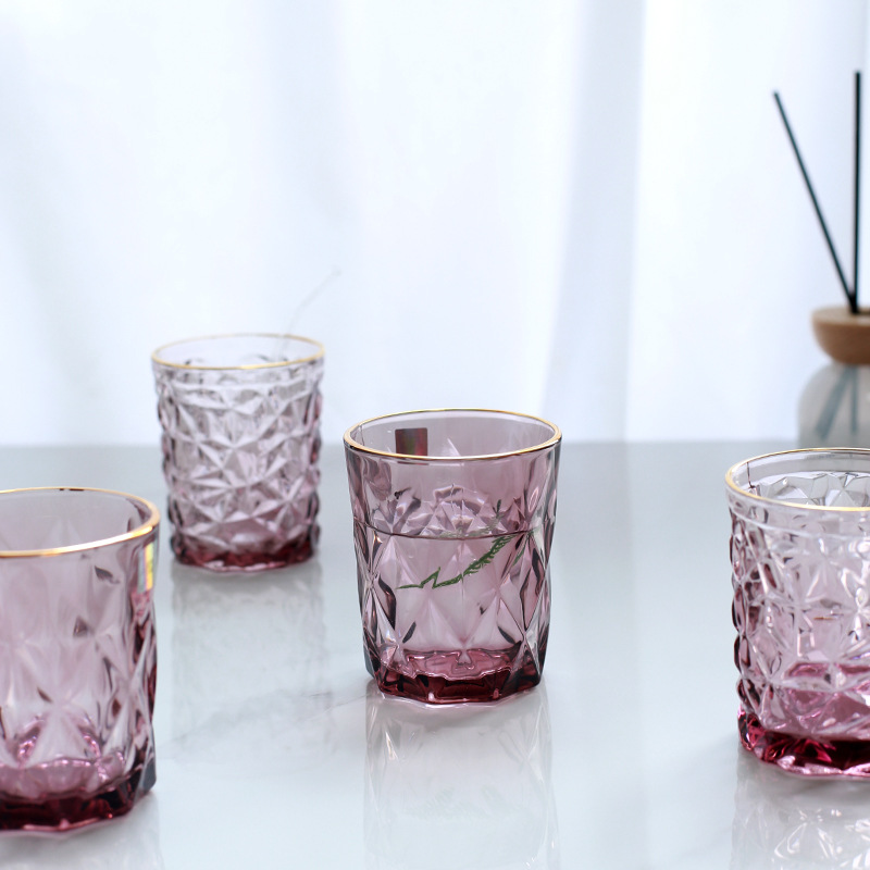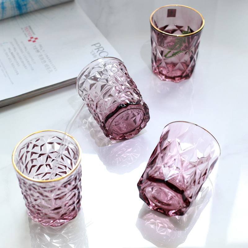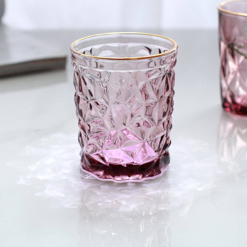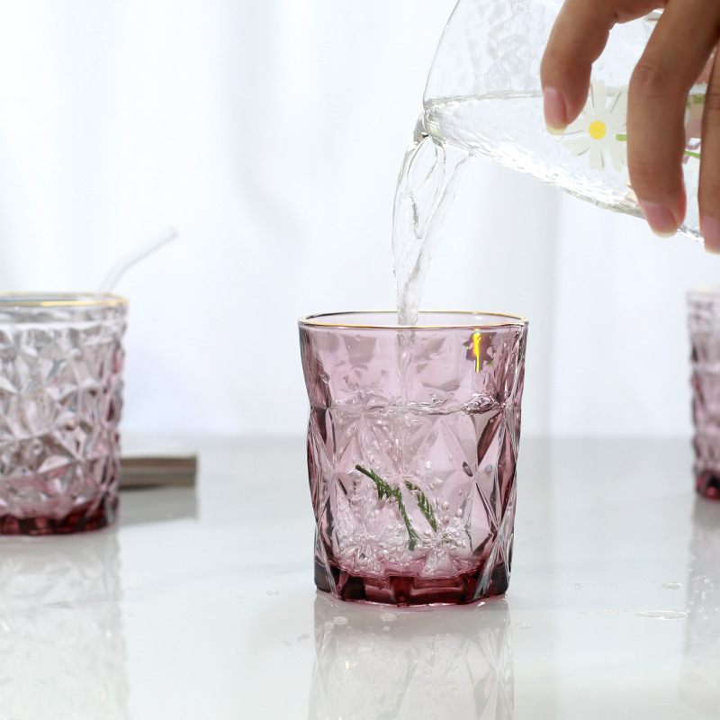 O vidro transparente tem uma textura martelada que faz com que as pessoas não consigam evitar tocá-lo repetidamente. Olhando de diferentes ângulos, você também pode apreciar as diferentes texturas e o brilho da luz do sol. A boca da xícara é um círculo de linhas douradas, simples e ao mesmo tempo luxuosa, conferindo-lhe um toque de moda leve e luxuoso. O copo como um todo adota tecnologia de martelamento, que proporciona excelente toque ao toque e também é eficaz na prevenção de escorregões. A boca do copo também foi polida, não tem rebarbas, é lisa e se adapta ao formato dos nossos lábios. O fundo do copo é engrossado para aumentar o atrito e evitar que o copo tombe, para que você possa usá-lo com tranquilidade. Todos os copos são projetados com uma grande abertura para fácil acesso e limpeza. Ao mesmo tempo, o copo não absorverá sabores e não reterá o cheiro da última vez que foi enchido. INTOWALK Fabricante de vidro fonte da China