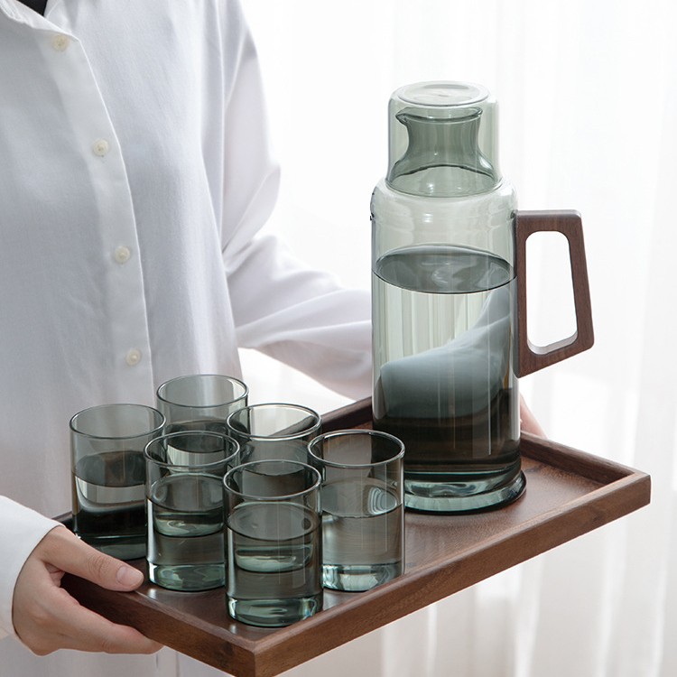 1. No verão refrescante, uma panela é suficiente. Design de grande capacidade de 1L para atender às necessidades diárias; bandeja de madeira de nogueira, capaz de transportar objetos, versátil e versátil