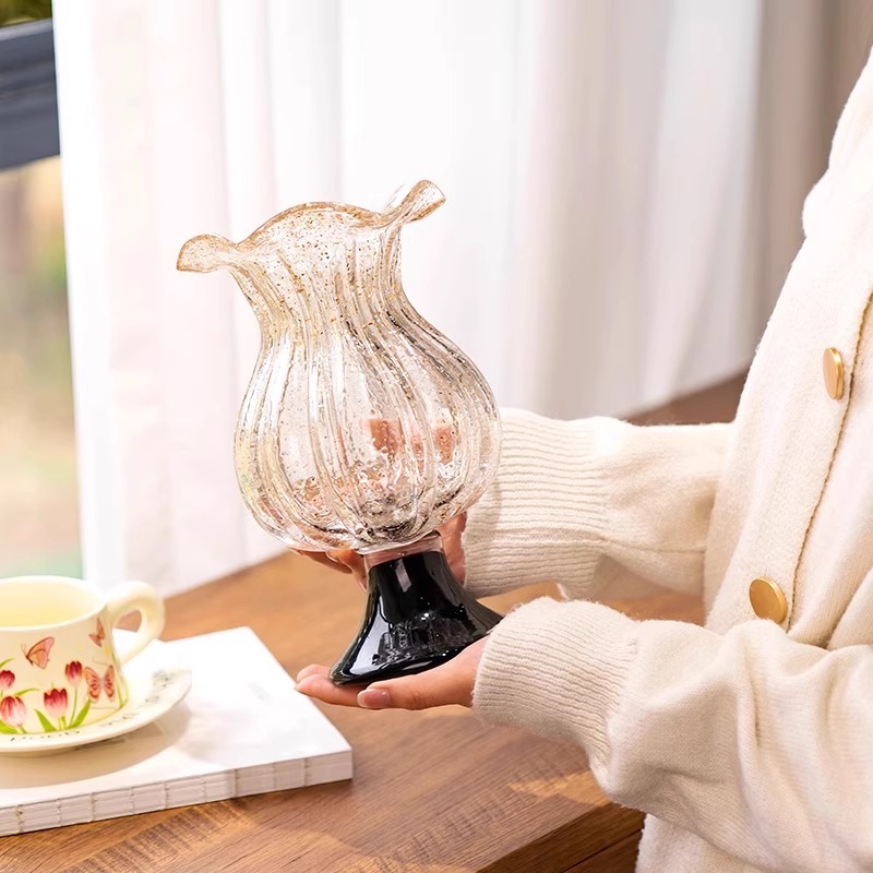 Nome do produto: Vaso de vidro alto vintage polvilhado de ouro luxuoso
