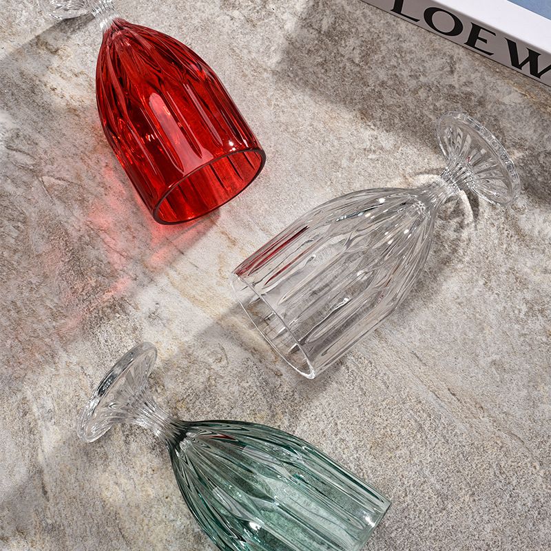 Esta taça de vinho tinto multicolorida em relevo tem uma textura retrô e elegante gravada com listras verticais e facetas de diamante. O corpo do copo é brilhante e confortável de segurar. É agradável à vista, elegante e romântico ao sol. INTOWALK faz com que o estilo da casa reflita o temperamento único da arte da vida, sendo simples, mas não simples Elegância discreta, refinada em cada detalhe. Gosto particularmente de uma frase: Ocupação não é tudo na vida. Espero que todos possamos desacelerar.