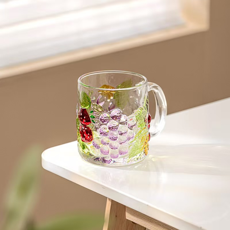 1. O corpo da xícara, frutas pintadas à mão em relevo, mais distintas e bonitas