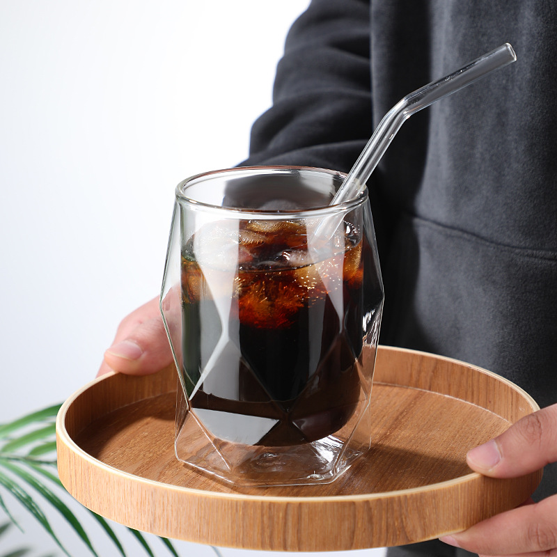1. Feito de vidro de alta qualidade com design tridimensional, perfeito para beber leite, café, refrigerante, cerveja ou uísque.
