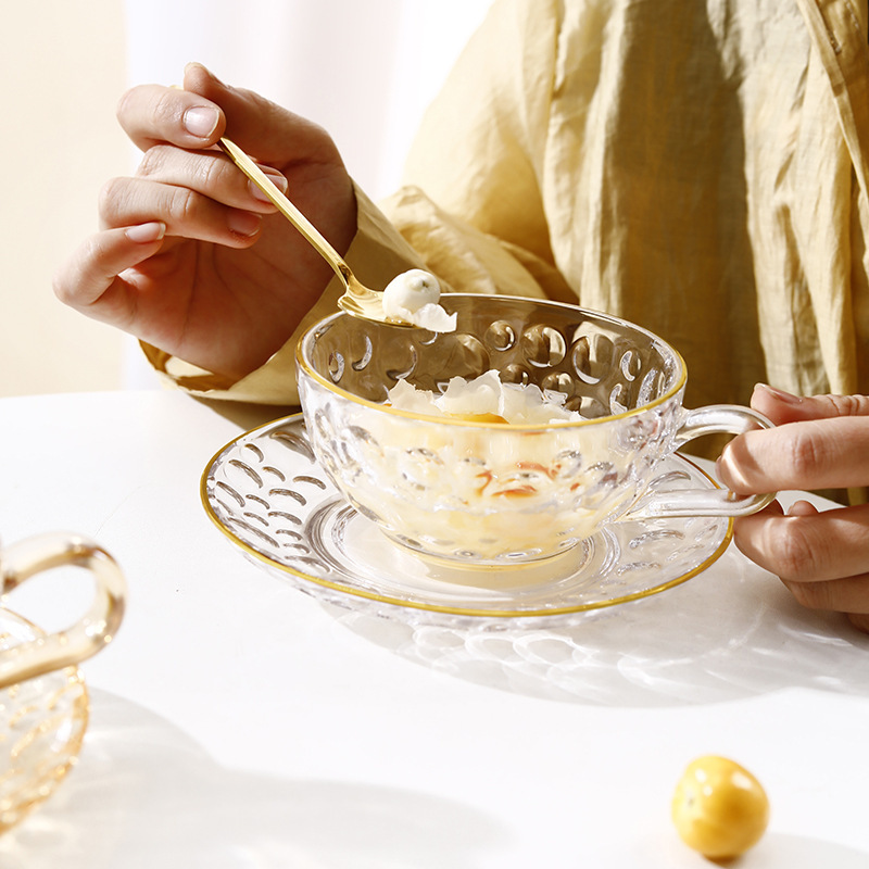 3. Corpo de copo transparente, com cor transparente simples, mas elegante, senso de design, luz fluindo sob o sol