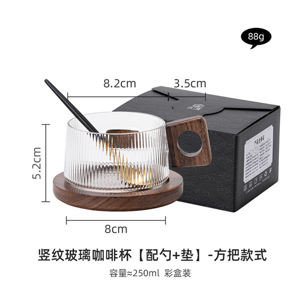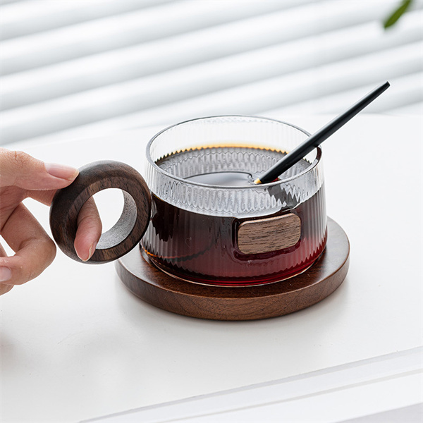 A xícara de café de vidro com padrão vertical traz sua própria beleza e é próxima da vida e adiciona um senso de design. Suco da manhã, chá com leite da tarde, cheio de vitalidade trazem sentimentos diferentes, design comovente desbloqueia bebidas sofisticadas, alto teor de borosilicato proporciona companheirismo de longo prazo, duas preferências diferentes, sempre há uma que fará seu coração bater. O requintado cabo de nogueira é confortável de segurar, e a peça geral relativamente grande foi cuidadosamente aparada pouco a pouco por artesãos para torná-la confortável de segurar e anti-escaldadura. É uma sensação quente, nova e bonita. Cadeia de suprimentos da plataforma de comércio eletrônico de produtos domésticos de vidro INTOWALK